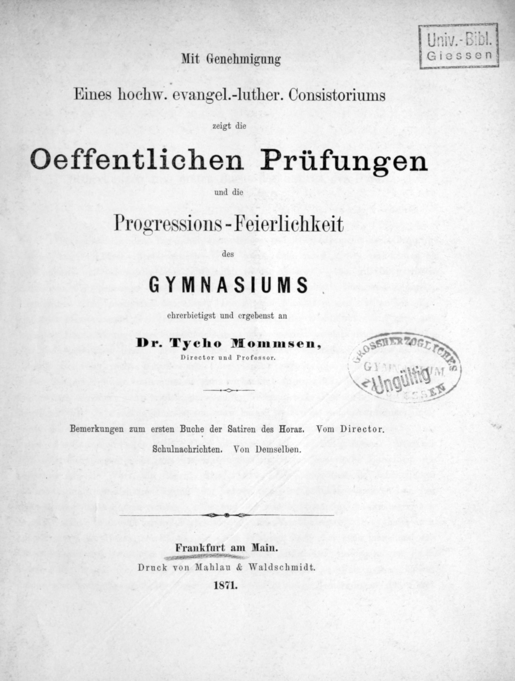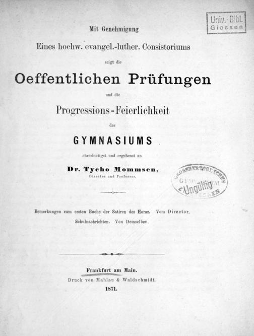 Programm des Städtischen Gymnasiums in Frankfurt a.M.