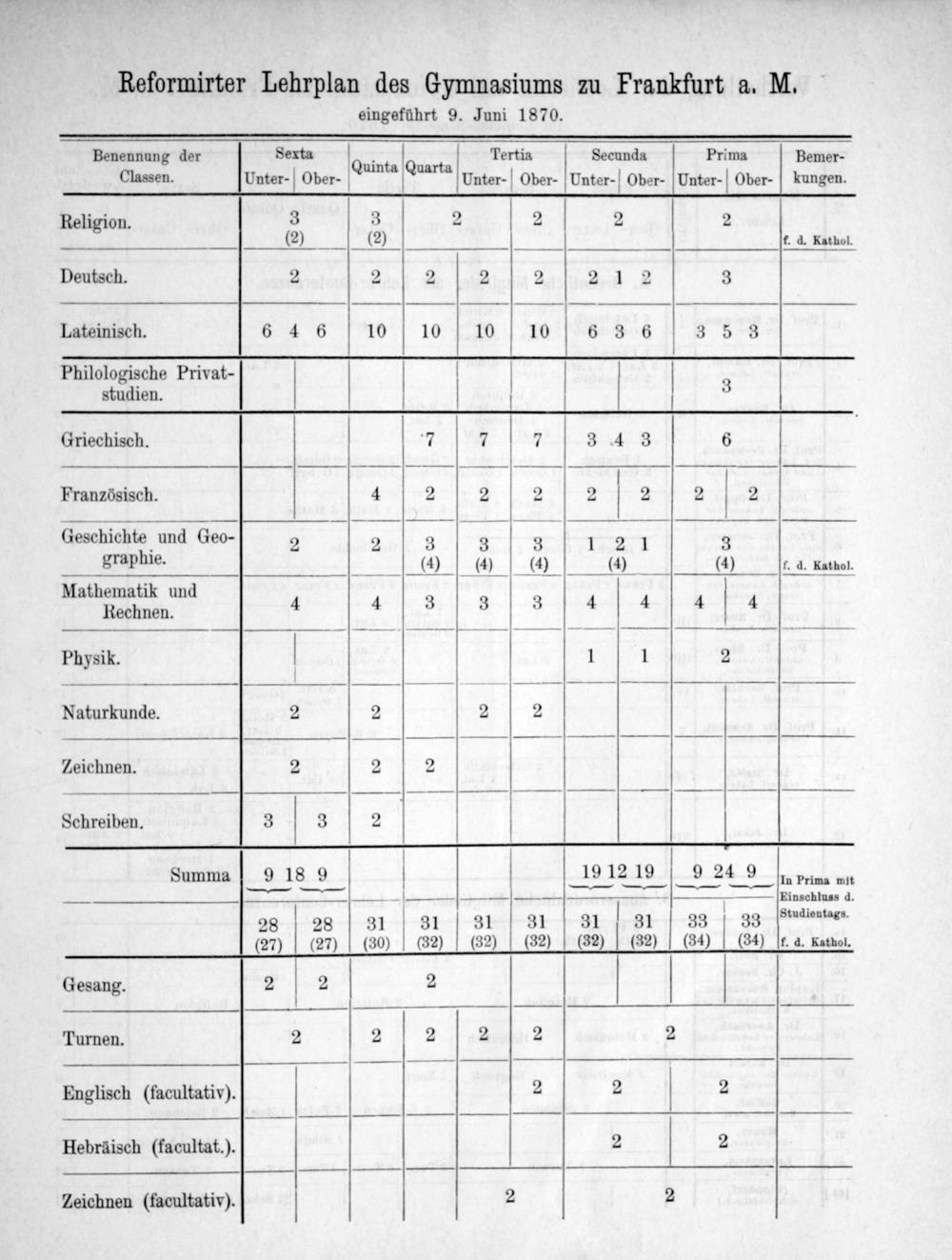 Programm des Städtischen Gymnasiums in Frankfurt a.M.