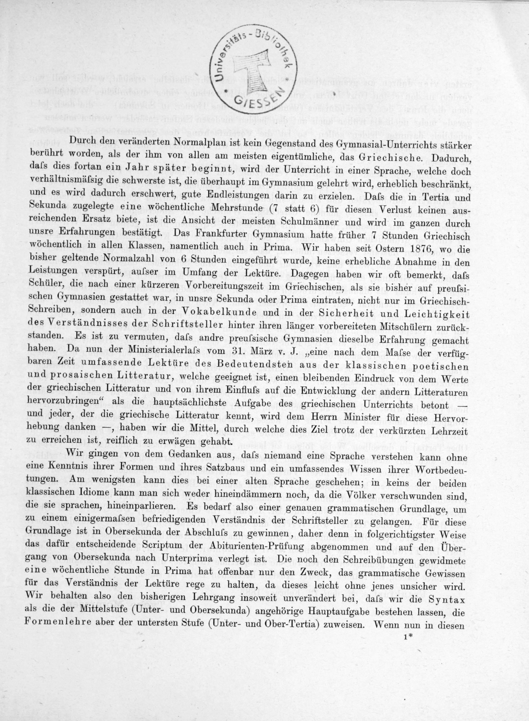 Programm des Städtischen Gymnasiums in Frankfurt a.M.