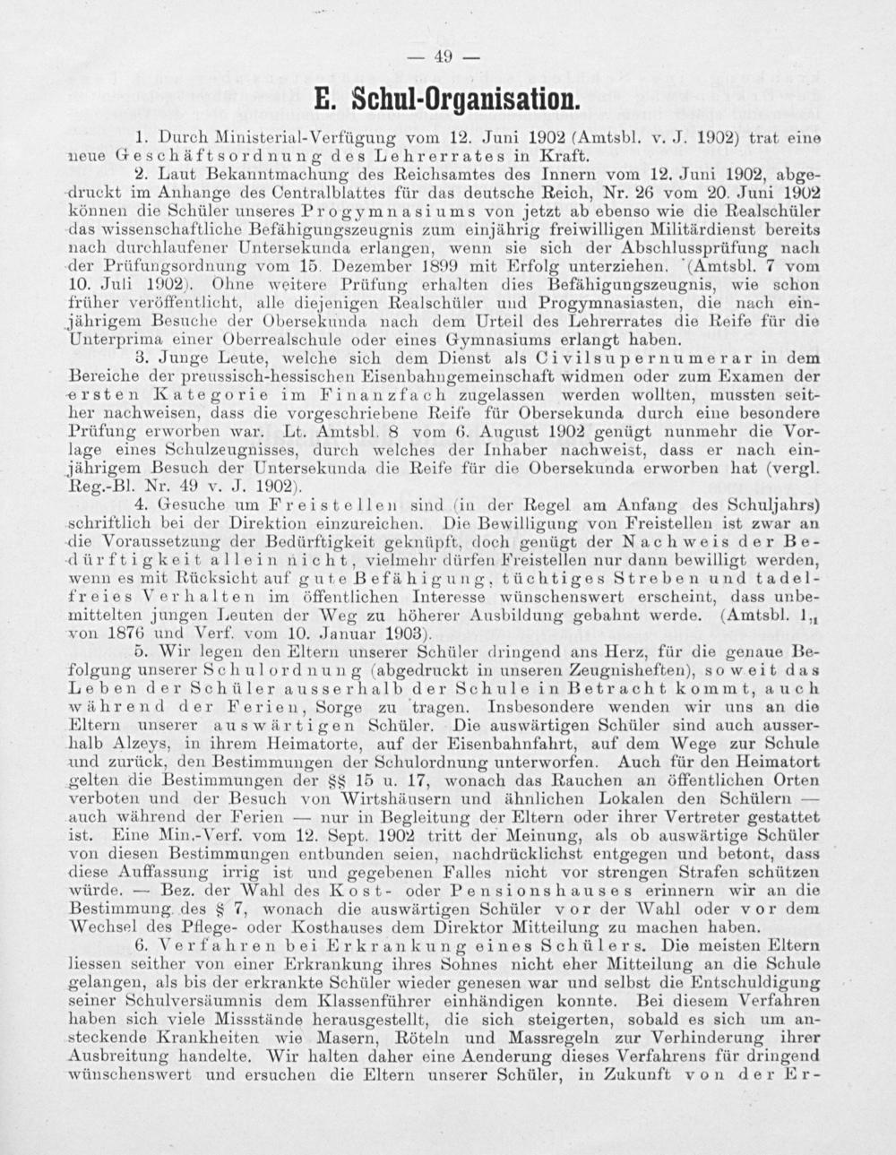 Jahresbericht der Grossh. Realschule und des Progymnasiums (mit Vorschule) zu Alzey