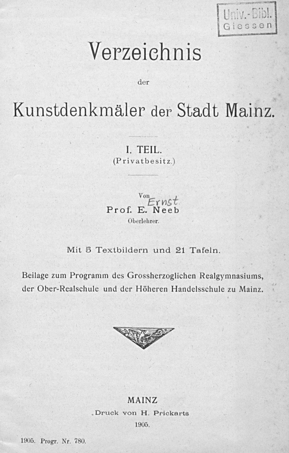 Verzeichnis der Kunstdenkmäler der Stadt Mainz
