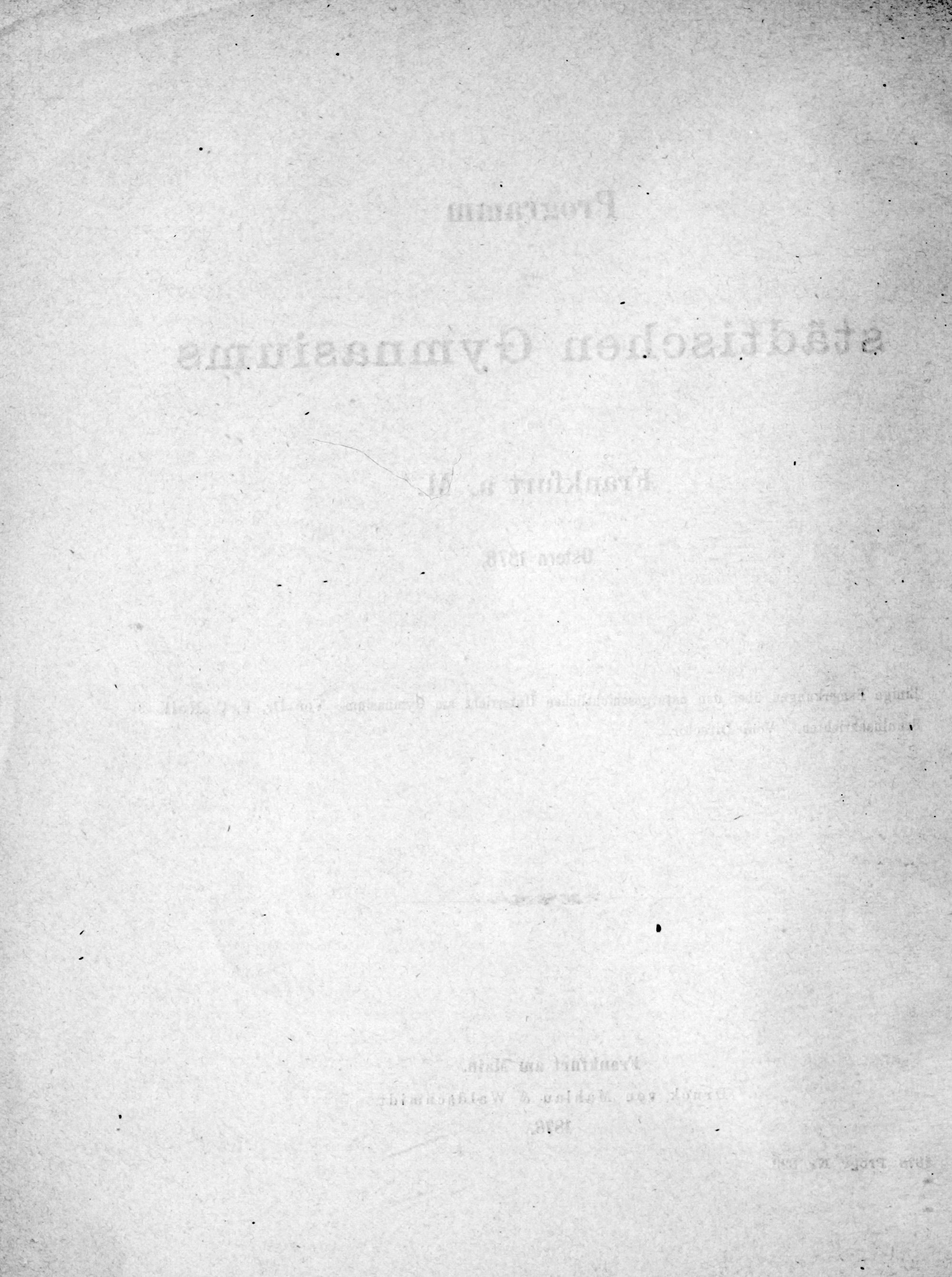 Programm des Städtischen Gymnasiums in Frankfurt a.M.