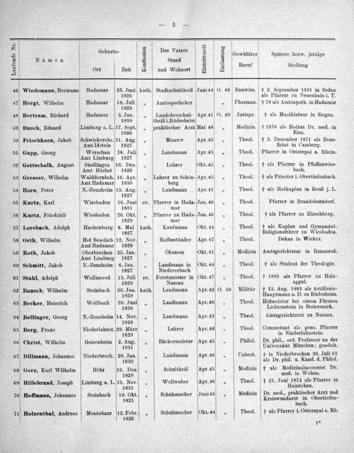 Verzeichnis der Abiturienten des Gymnasiums zu Hadamar von Ostern 1847 bis Ostern 1894 : Beigabe zur Jubiläumsschrift