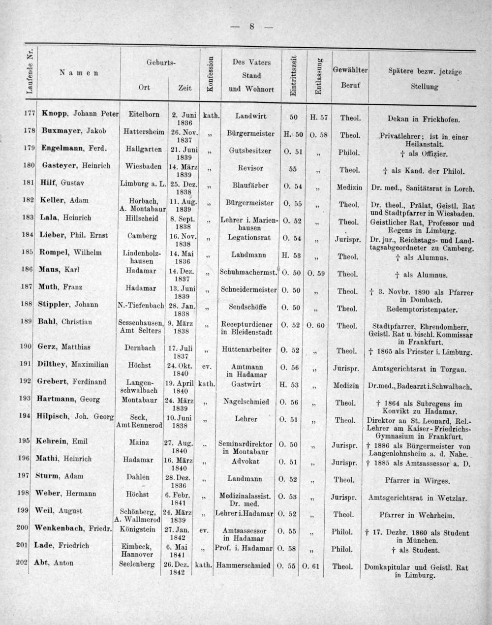 Verzeichnis der Abiturienten des Gymnasiums zu Hadamar von Ostern 1847 bis Ostern 1894 : Beigabe zur Jubiläumsschrift