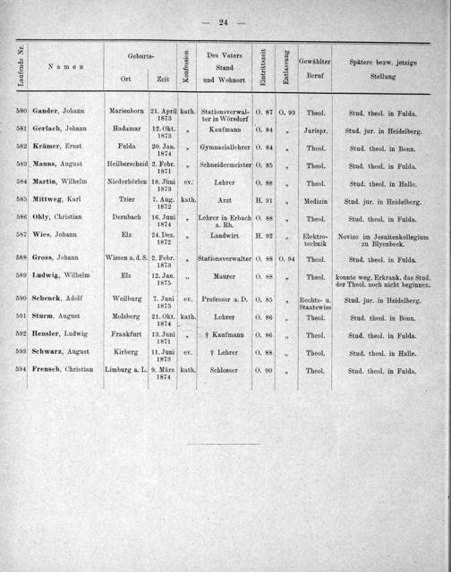 Verzeichnis der Abiturienten des Gymnasiums zu Hadamar von Ostern 1847 bis Ostern 1894 : Beigabe zur Jubiläumsschrift