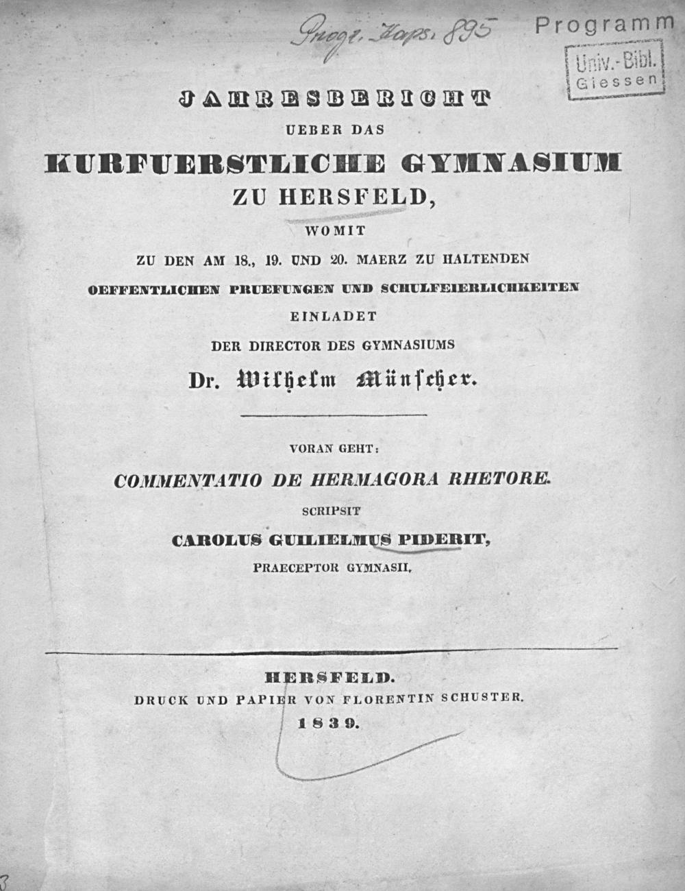 Commentatio de Hermagora rhetore / scripsit Carolus Guilielmus Piderit