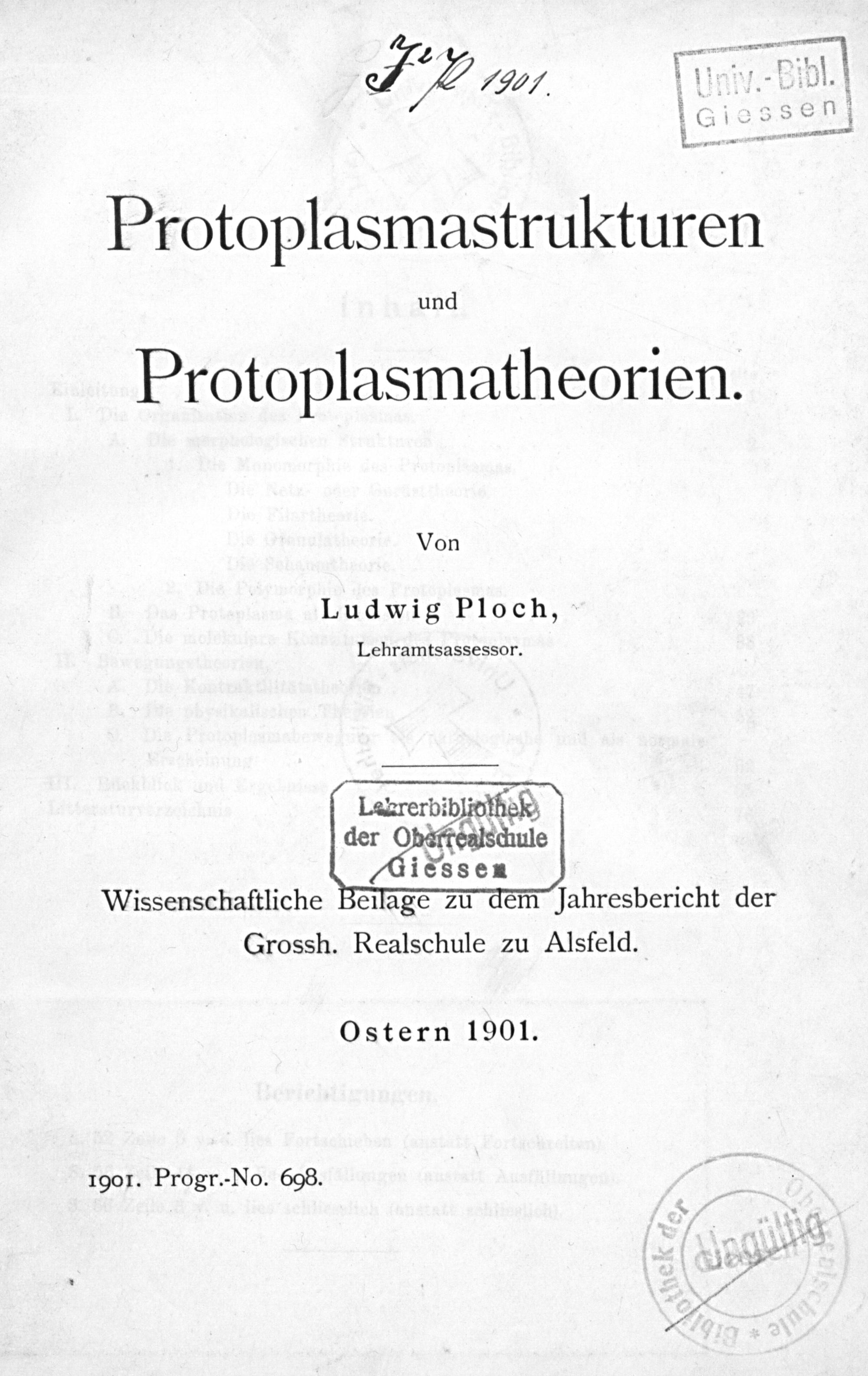 Protoplasmastrukturen und Protoplasmatheorien