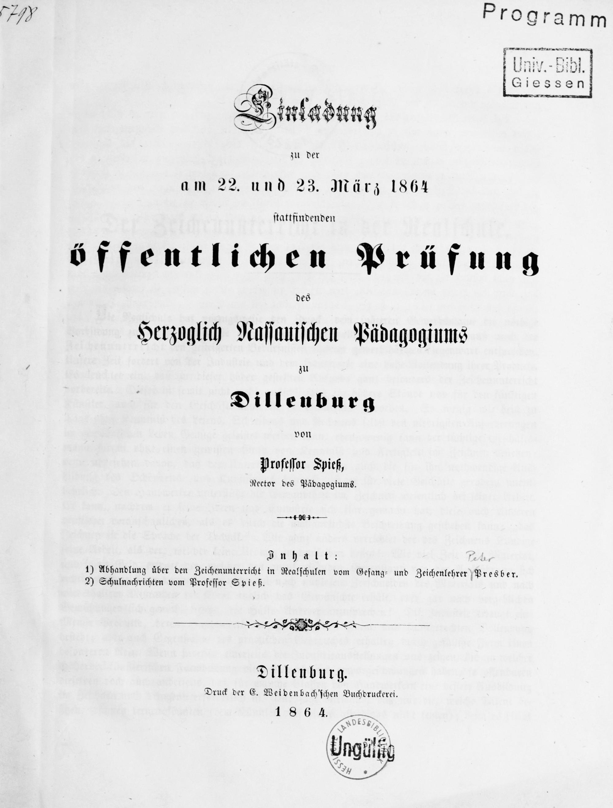 Einladung zu der am ... stattfindenden öffentlichen Prüfung des Herzoglich-Nassauischen Pädagogiums zu Dillenburg