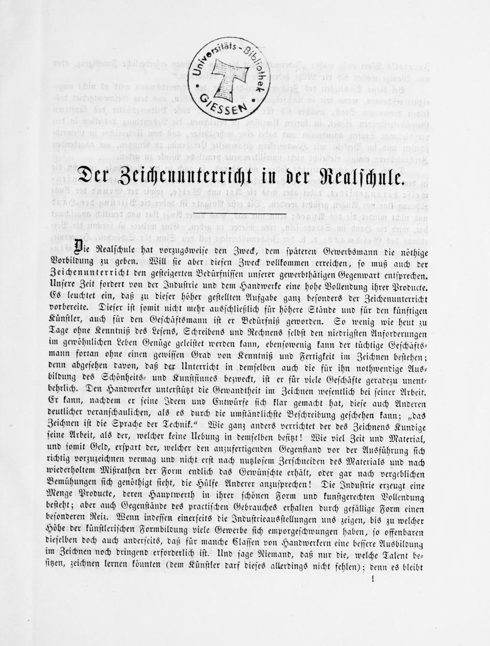 Der Zeichenunterricht in der Realschule / [vom Gesang- und Zeichenlehrer Presber]