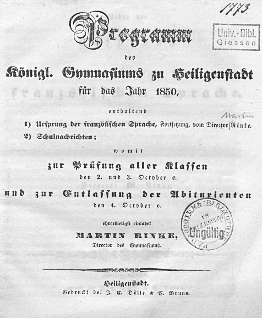 Programm des Königl. Gymnasiums zu Heiligenstadt