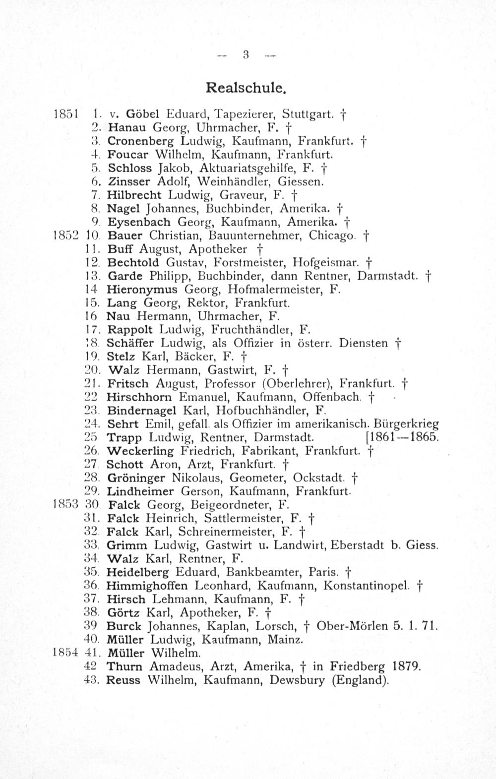 Abiturientenliste der Augustinerschule (Gymnasium und Realschule) zu Friedberg/Hessen 1851 - 1902