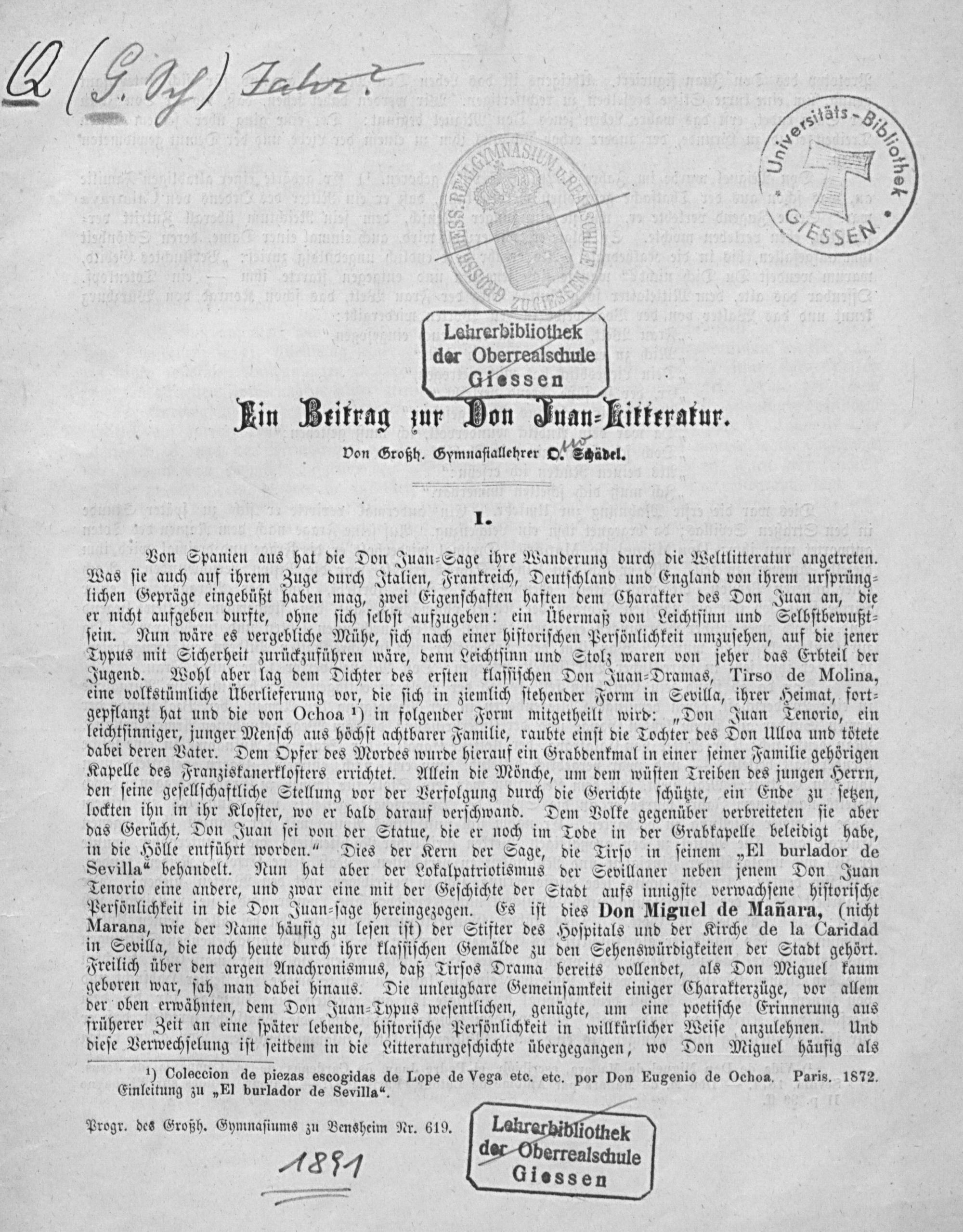 Ein Beitrag zur Don Juan-Literatur / von O. Schädel
