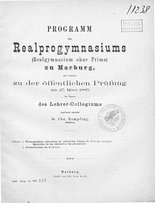 Programm des Realprogymnasiums (Realgymnasium ohne Prima) in Marburg