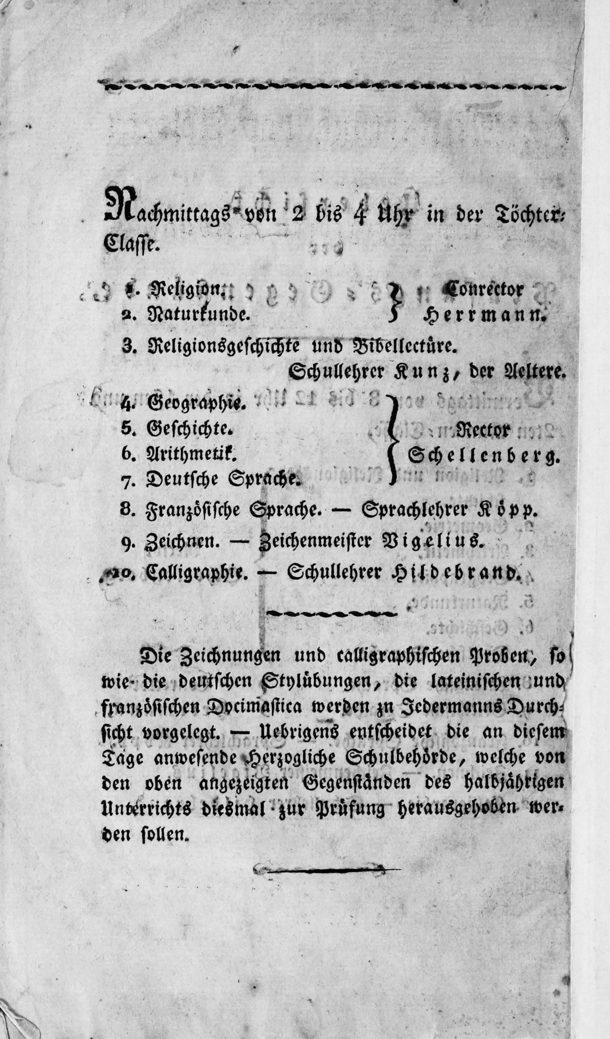 Eine Einladungsschrift zu der auf den ... bestimmten Prüfung in der Friedrichsschule zu Wiesbaden