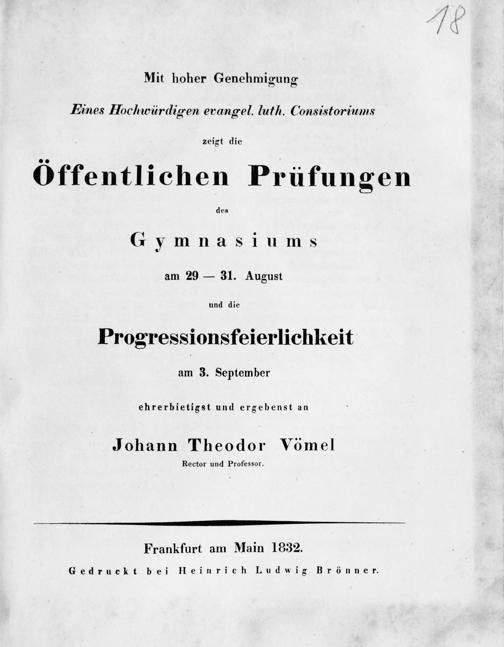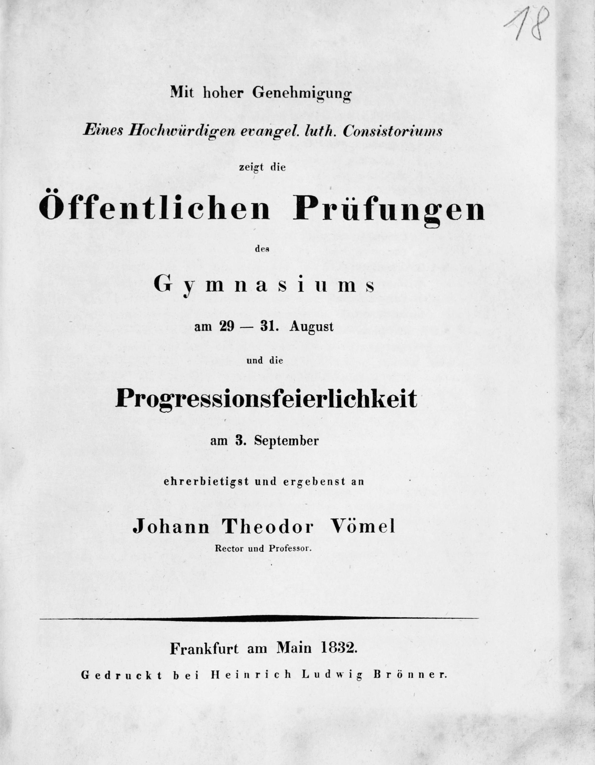 Examina solemnia Gymnasii Francofurtensis jussu et auctoritate summe venerandi consistorii Aug. Conf. ... publice celebranda ea qua decet pietate et observantia indicit