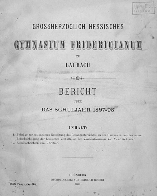 Beiträge zur Frage der rationelleren Gestaltung des Gesangunterrichtes an den Gymnasien : mit besonderer Berücksichtigung der hessischen Verhältnisse