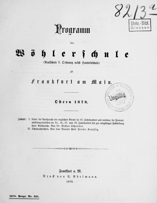 Über die Aussprache der englischen Vokale im 13. Jahrhundert und vordem; die Fortentwicklung derselben im 14., 16., 17. und 18. Jahrhundert bis zur endgültigen Feststellung ihrer Aussprache