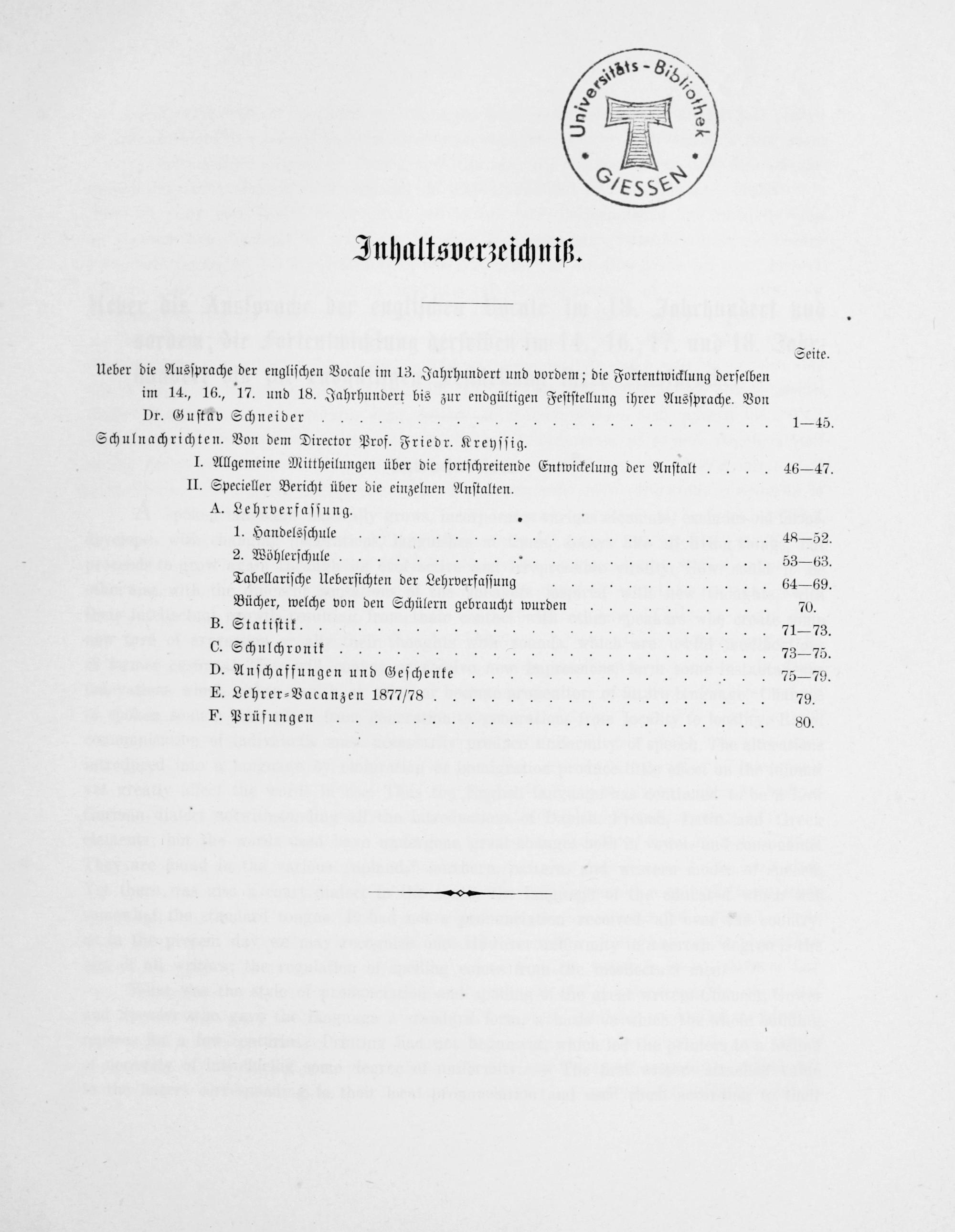 Über die Aussprache der englischen Vokale im 13. Jahrhundert und vordem; die Fortentwicklung derselben im 14., 16., 17. und 18. Jahrhundert bis zur endgültigen Feststellung ihrer Aussprache