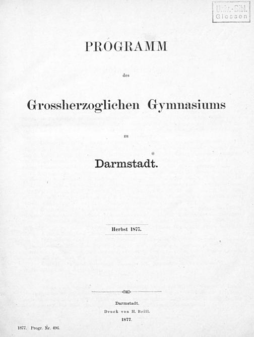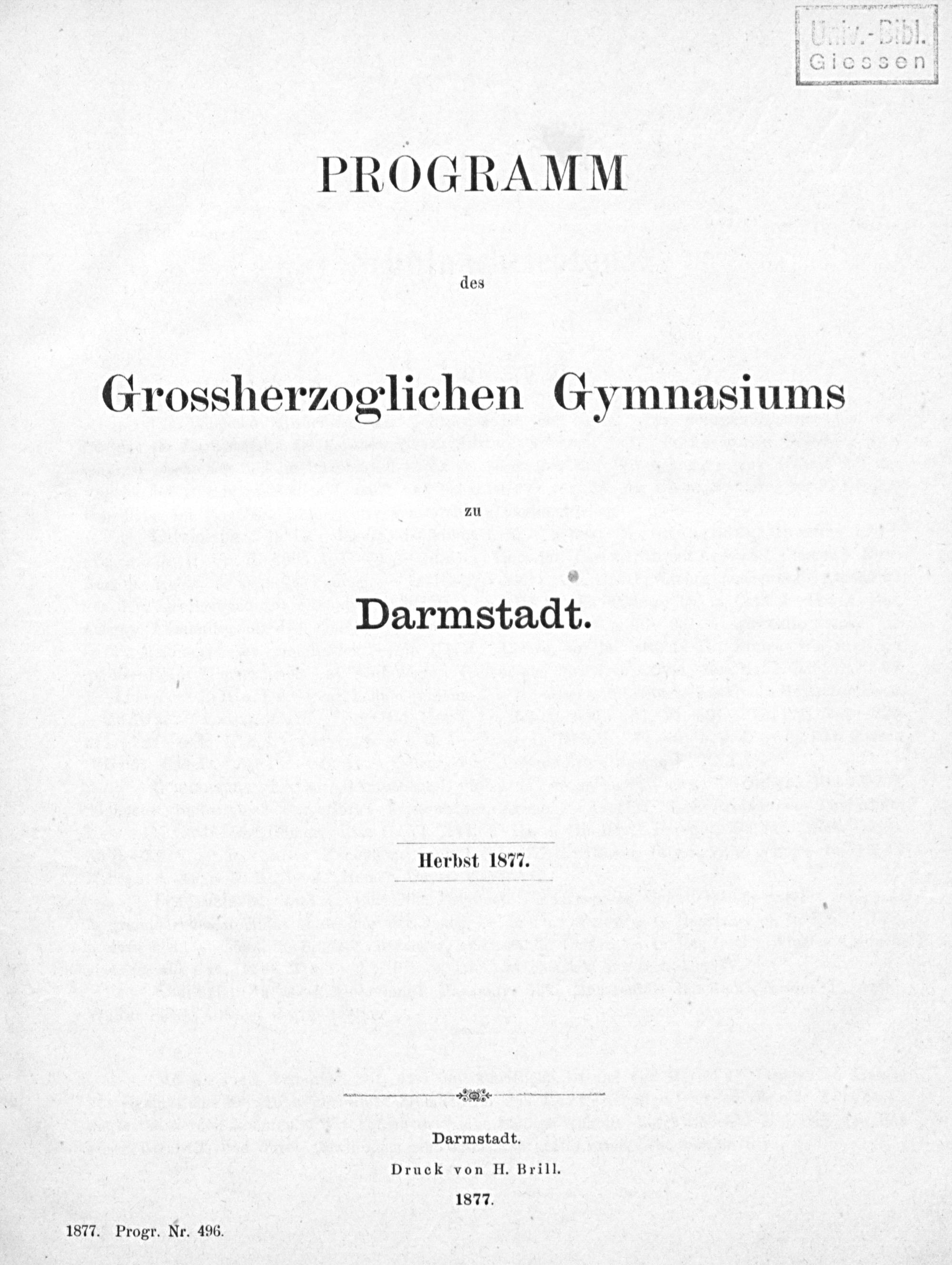 Programm des Großherzoglichen Gymnasiums zu Darmstadt
