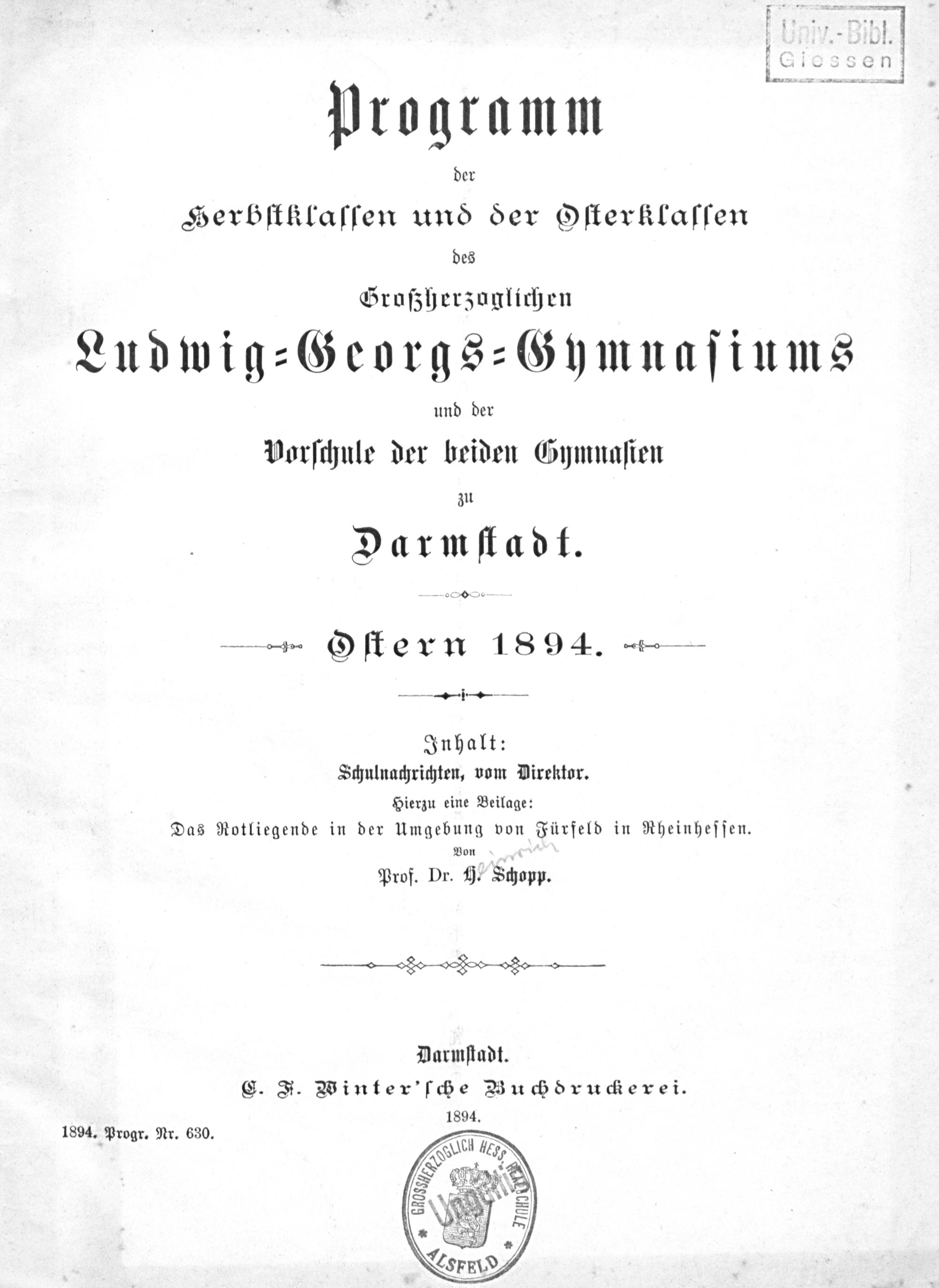 Programm der Osterklassen und der Herbstklassen des Großherzoglichen Ludwig-Georgs-Gymnasiums und der Vorschule der beiden Gymnasien zu Darmstadt