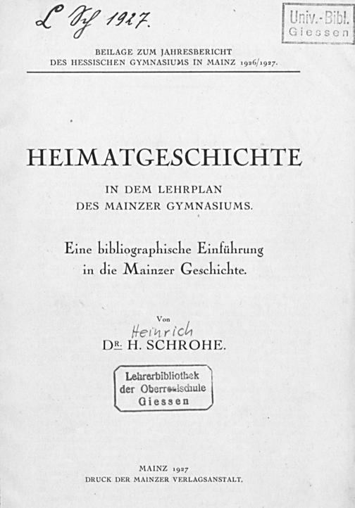 Jahresbericht des Gymnasiums zu Mainz für das Schuljahr ...
