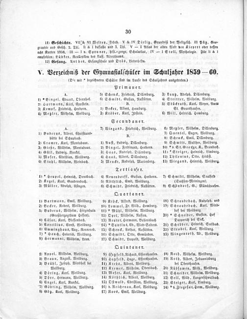 Ankündigung der öffentlichen Frühlingsprüfung im Herzoglich-Nassauischen Gymnasium zu Weilburg