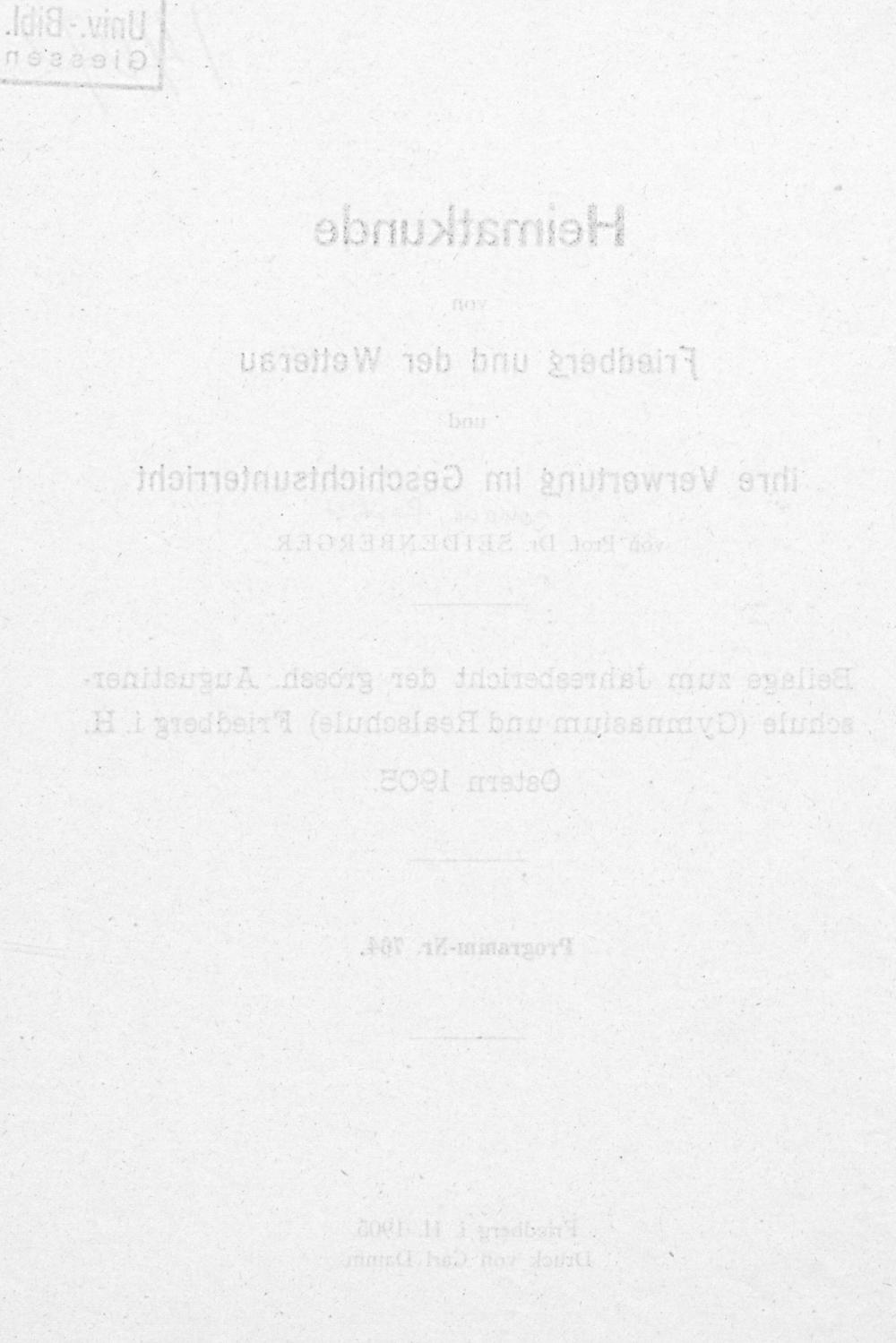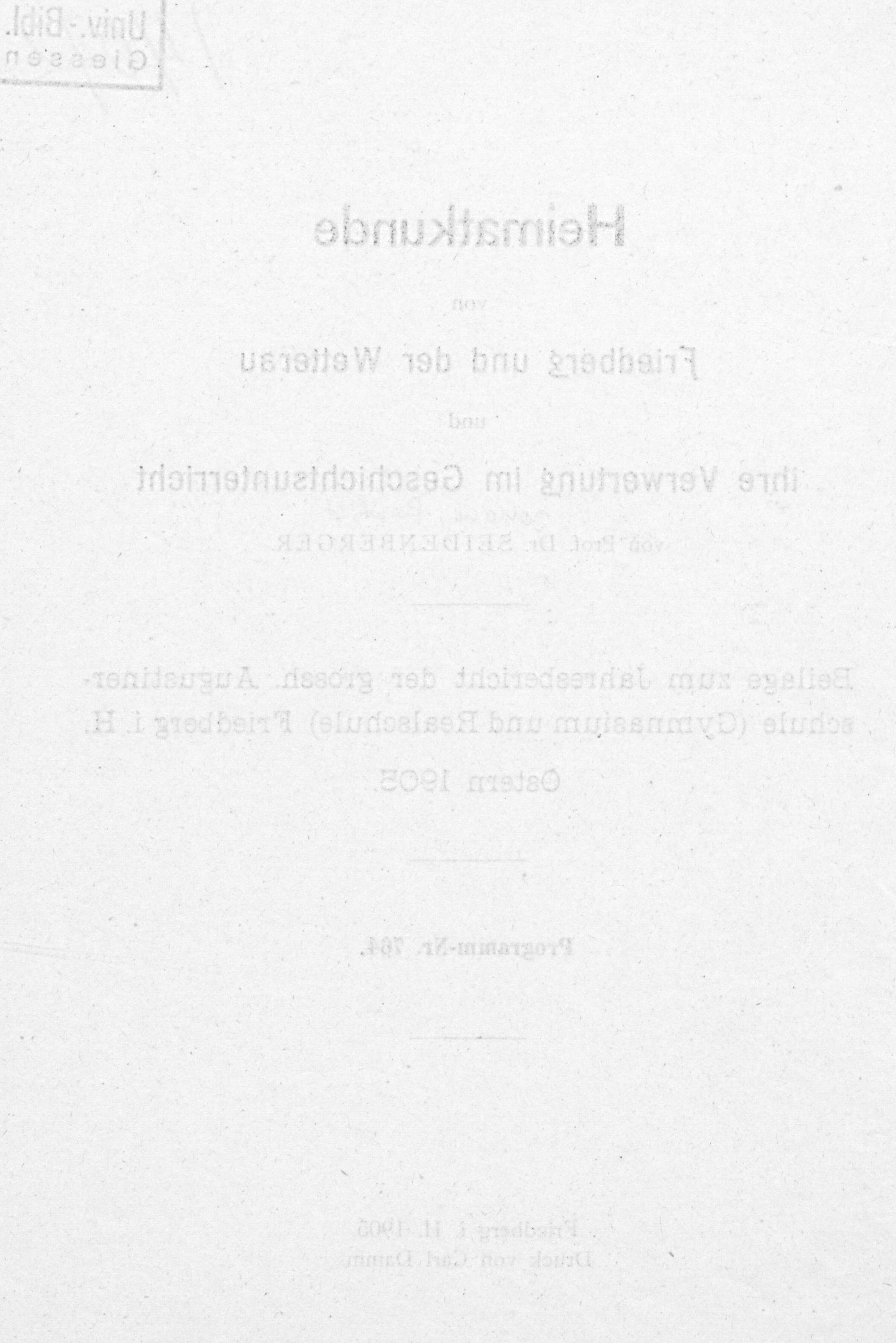 Heimatkunde von Friedberg und der Wetterau und ihre Verwertung im Geschichtsunterricht