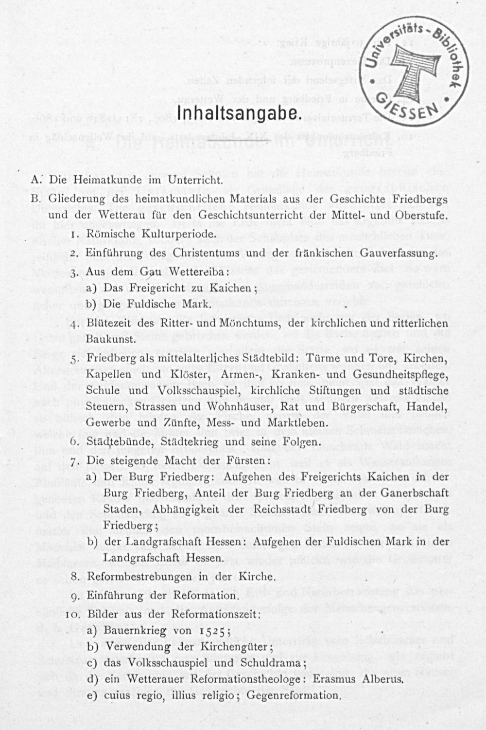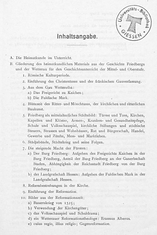 Heimatkunde von Friedberg und der Wetterau und ihre Verwertung im Geschichtsunterricht