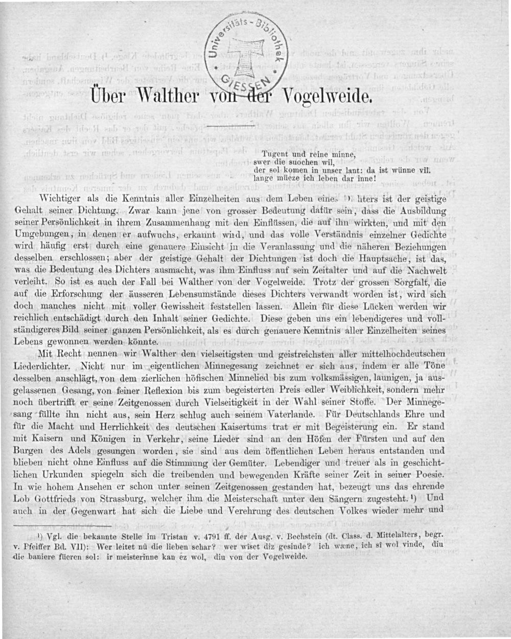 Über Walther von der Vogelweide