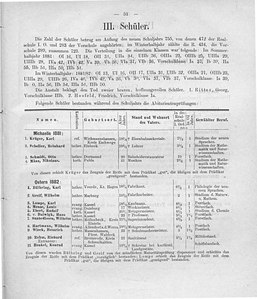 Zu der öffentlichen Prüfung der Schüler des Städtischen Realgymnasiums, welche ... in der Aula des Realgymnasiums vorgenommen werden soll, ladet ... ehrerbietigst und ergebenst ein