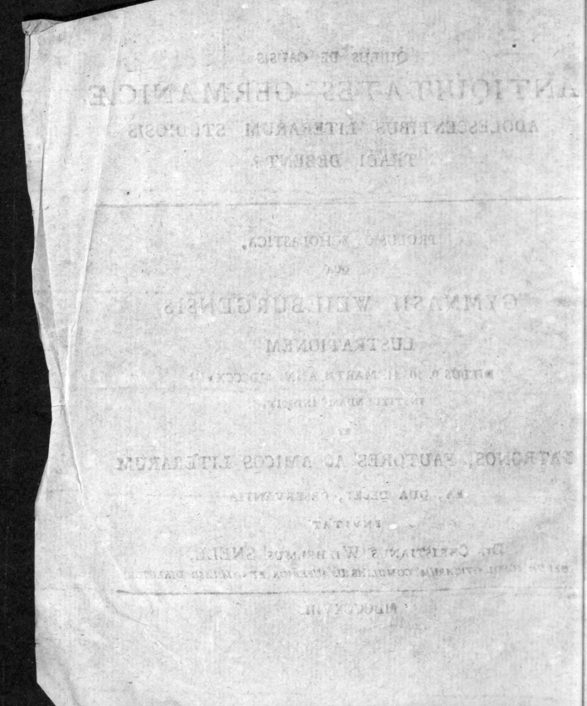 Quibus de causis antiquitates Germanicae adolescentibus literarum studiosis tradi debent?