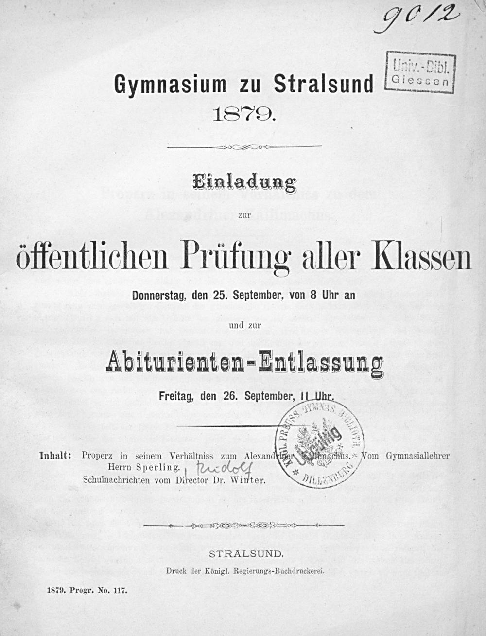 Properz in seinem Verhältniss zu dem Alexandriner Kallimachus