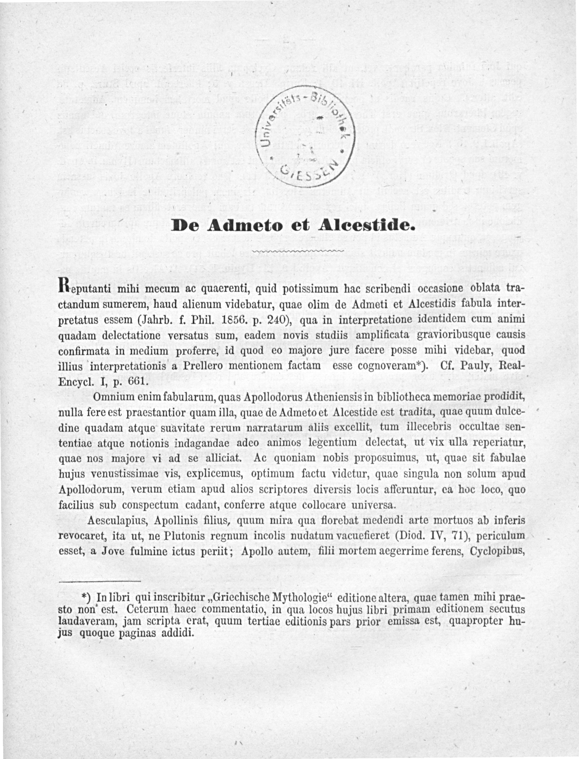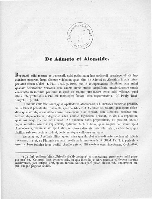 De Admeto et Alcestide : mythologische Abhandlung / vom ... Ludwig Stacke