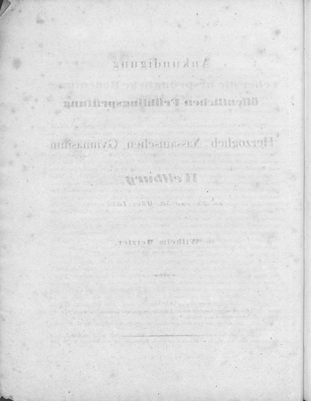 Ankündigung der öffentlichen Frühlingsprüfung im Herzoglich-Nassauischen Gymnasium zu Weilburg