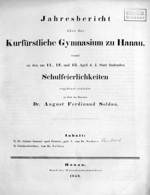Jahresbericht über das Kurfürstliche Gymnasium zu Hanau
