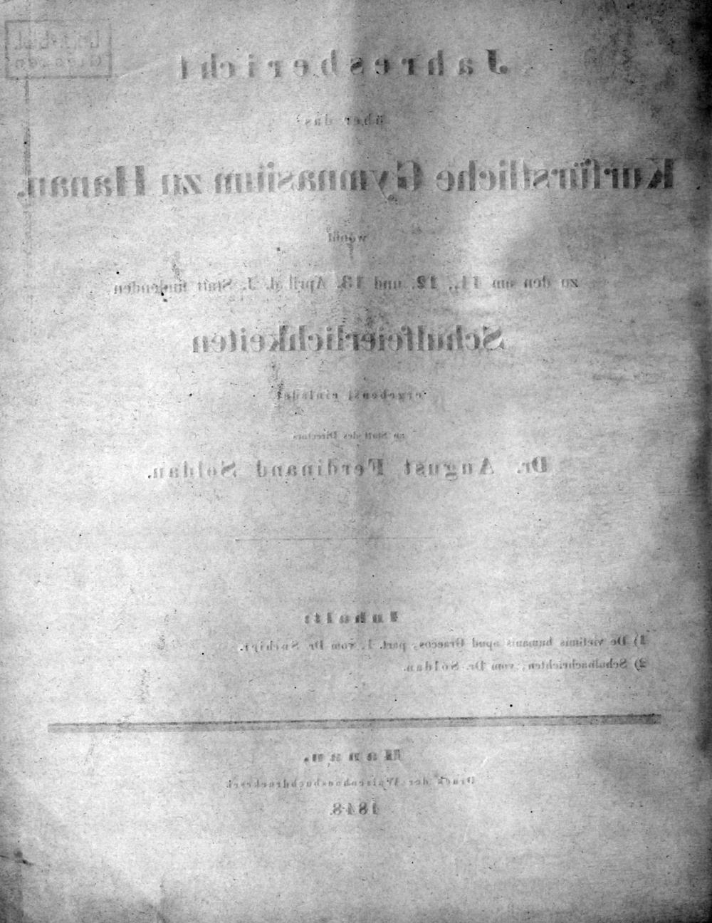 Jahresbericht über das Kurfürstliche Gymnasium zu Hanau