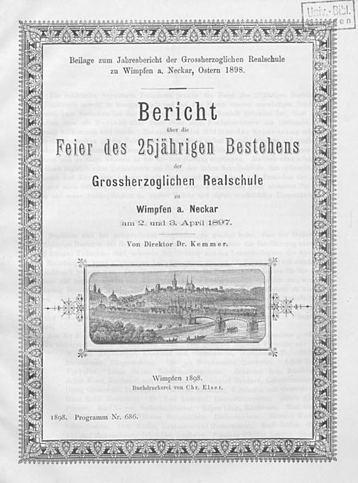 Bericht über die Feier des 25jährigen Bestehens der Großherzoglichen Realschule zu Wimpfen am Neckar am 2. und 3. April 1897