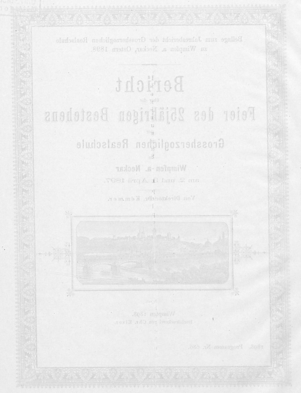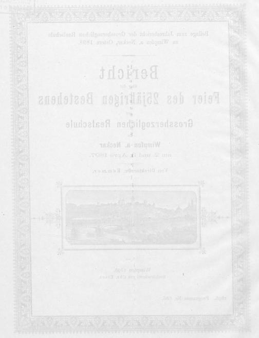 Bericht über die Feier des 25jährigen Bestehens der Großherzoglichen Realschule zu Wimpfen am Neckar am 2. und 3. April 1897