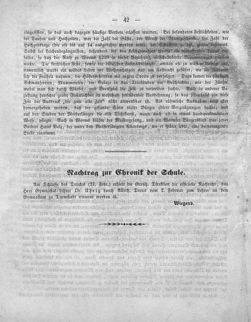 Einladungsschrift zu der vom ... bis ... statt findenden öffentlichen Prüfung des Durch Real-Klassen Erweiterten Gymnasiums zu Worms im Frühjahr ...
