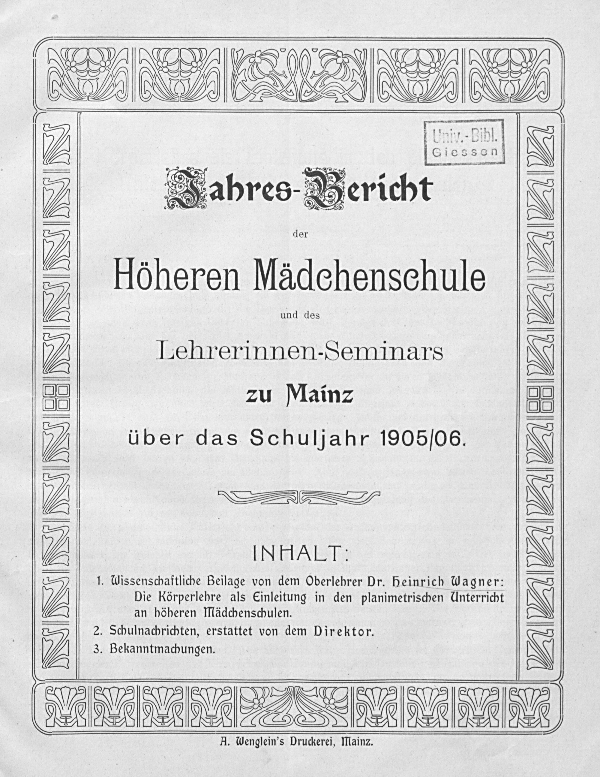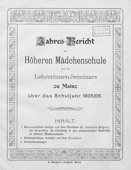 Jahres-Bericht der Höheren Mädchenschule und des Lehrerinnen-Seminars zu Mainz über das Schuljahr ...