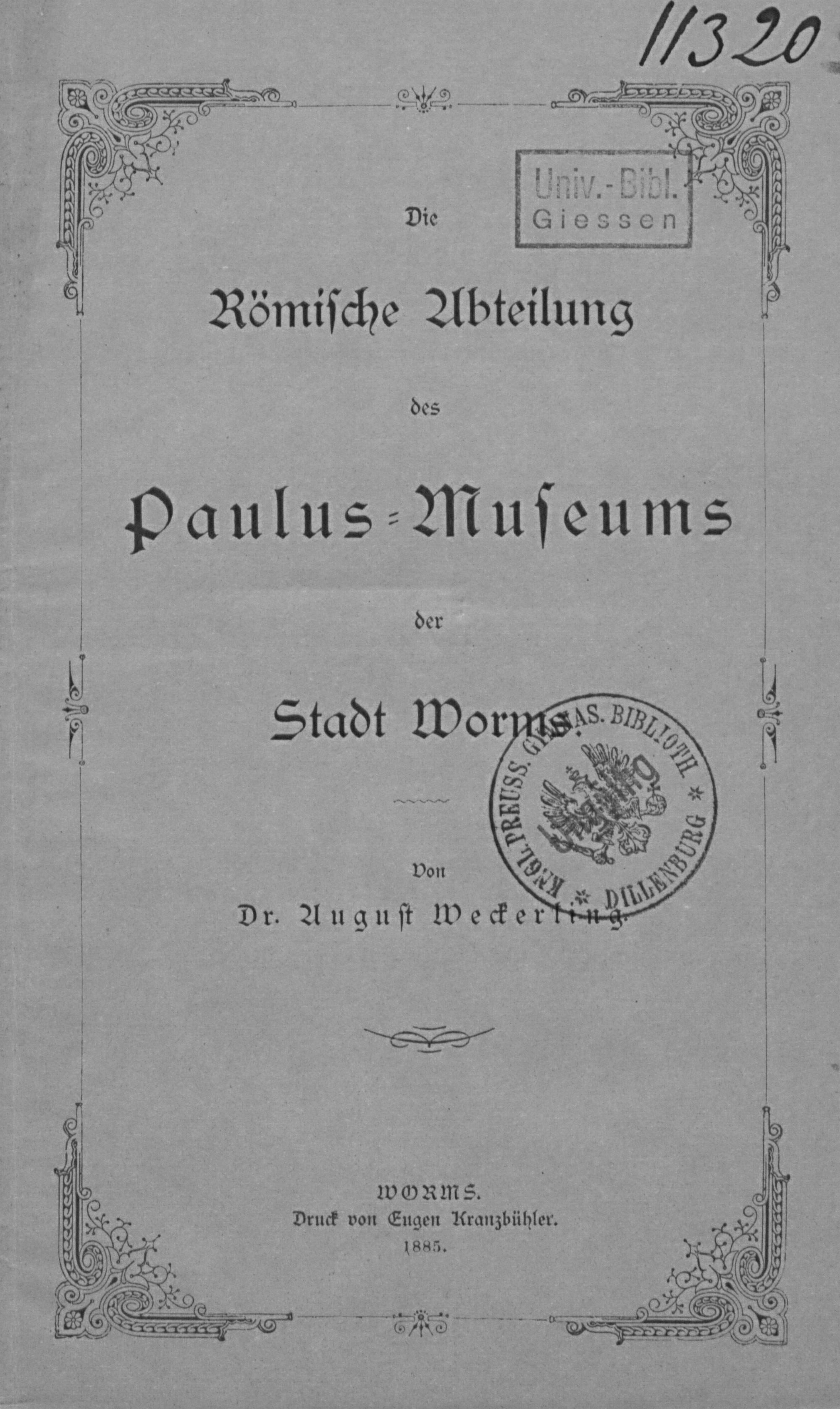 Die Römische Abteilung des Paulus-Museums der Stadt Worms : 1. Teil