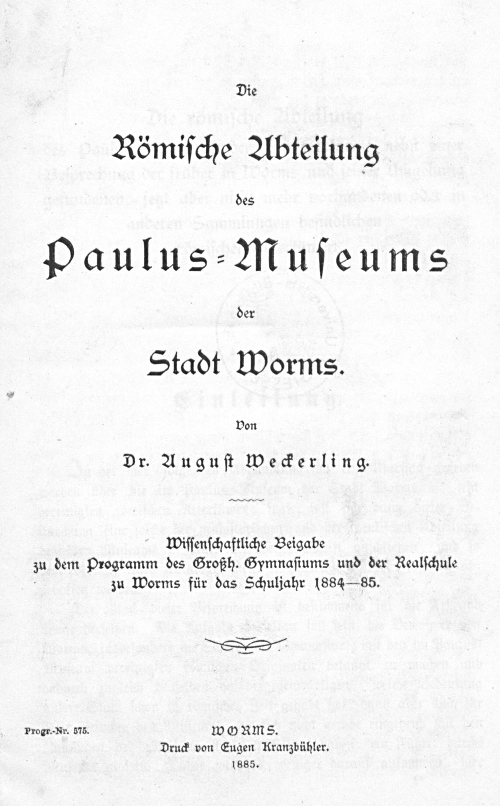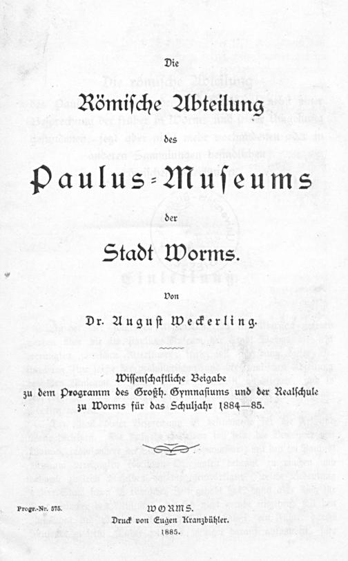 Die Römische Abteilung des Paulus-Museums der Stadt Worms : 1. Teil