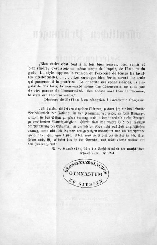 Über Buffon's Ausspruch:"Le style est l'homme nême" oder über die Bedeutung des Stils für die Charakteristik der Völker und Einzelnen, mit besonderer Berücksichtigung des deutschen Stiles
