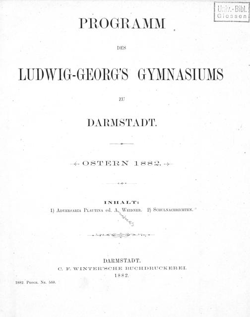 Programm des Großherzoglichen Ludwig-Georgs-Gymnasiums und der Vorschule der beiden Gymnasien zu Darmstadt