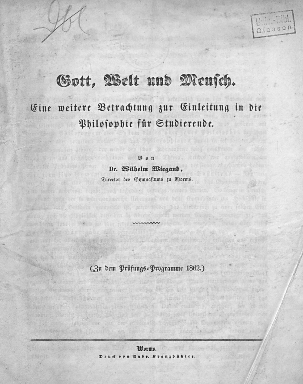 Einladungsschrift zu der vom ... bis ... statt findenden öffentlichen Prüfung des Durch Real-Klassen Erweiterten Gymnasiums zu Worms im Frühjahr ...