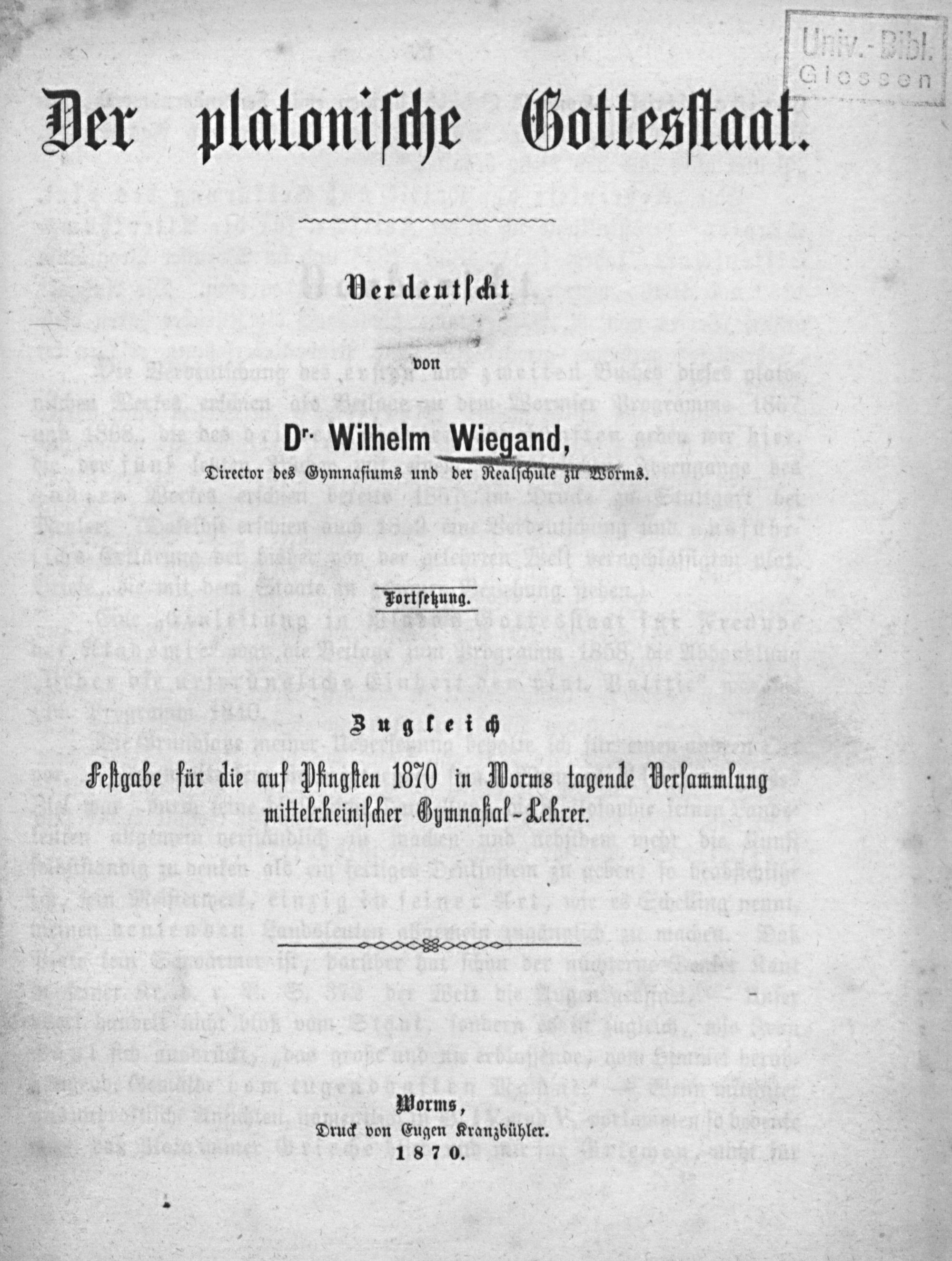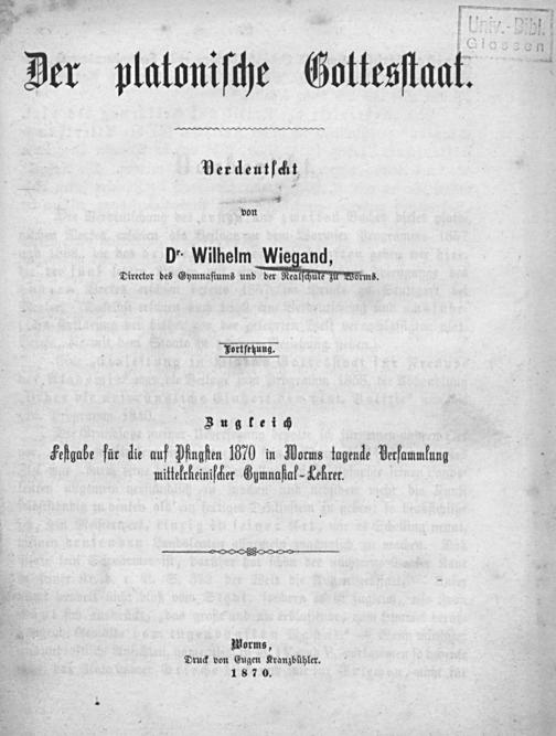 Das dritte Buch des platonischen Gottesstaates : oder: Fortsetzung der Kritik der Literatur behufs einer vernünftigen Jugenderziehung, sodann der Musik und Gymnastik aus demselben Gesichtspunkte, Staatsregenten und Staatsschutzmänner mit goldenen Seelen