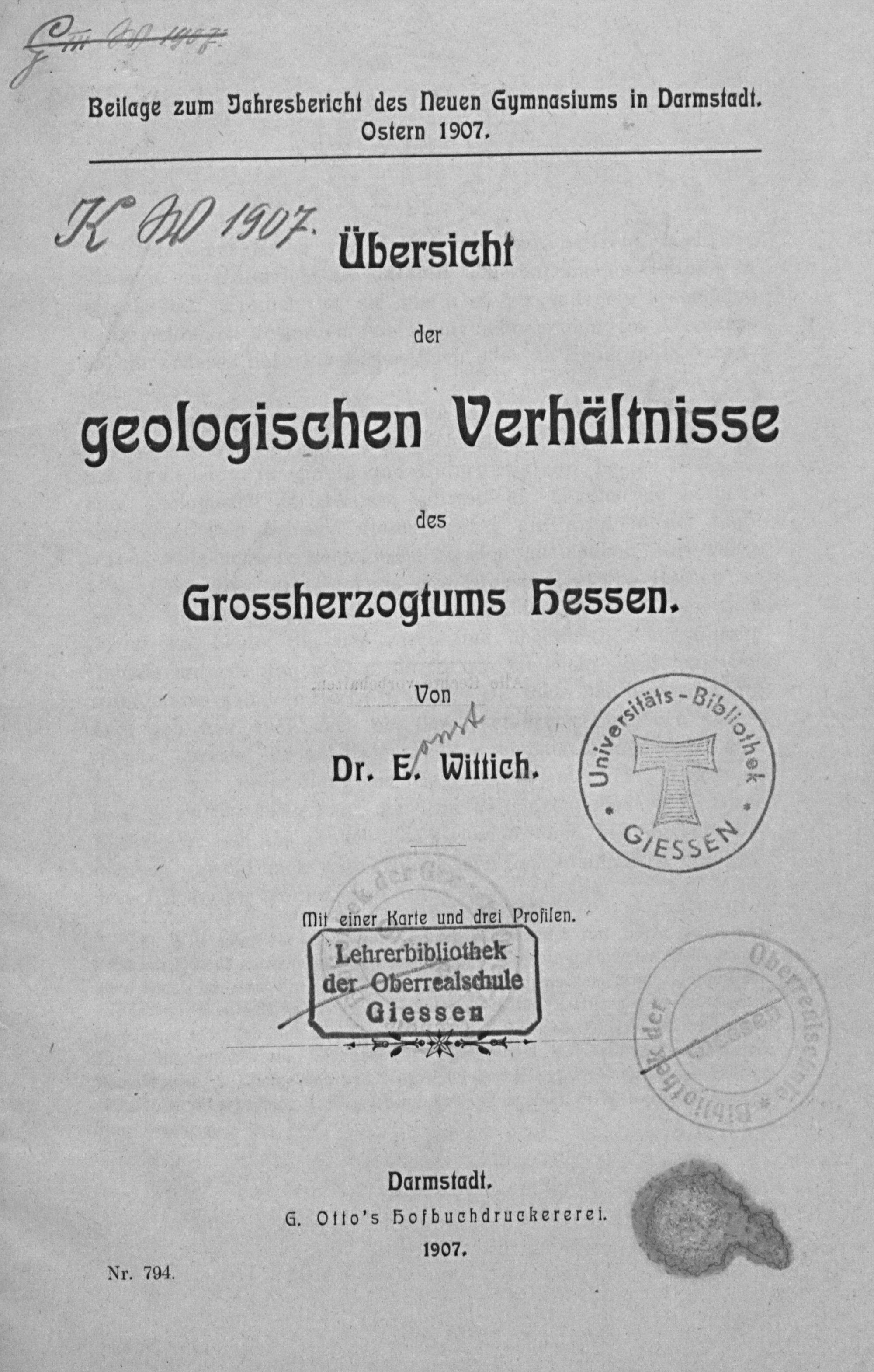 Übersicht der geologischen Verhältnisse des Großherzogtums Hessen