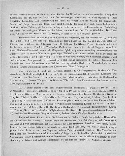 Zu der öffentlichen Prüfung der Schüler des Städtischen Realgymnasiums, welche ... in der Aula des Realgymnasiums vorgenommen werden soll, ladet ... ehrerbietigst und ergebenst ein