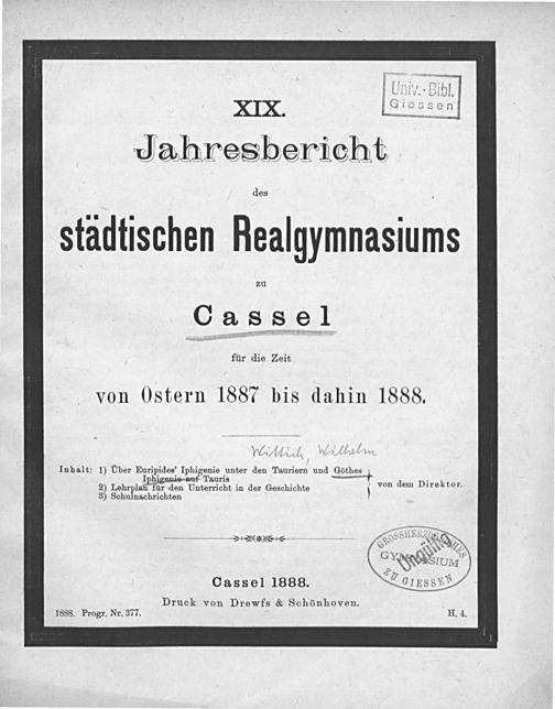 Über Euripides'Iphigenie unter den Tauriern und Goethes Iphigenie auf Tauris