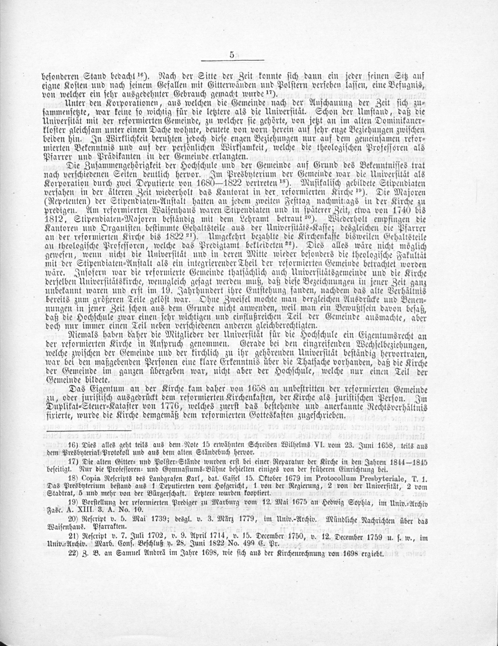 Kurze Nachricht über die geschichtlichen und rechtlichen Verhältnisse der evangelisch-reformierten Stadt- und Universitätskirche zu Marburg